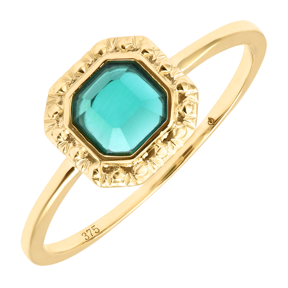 Irène ring – 9 karaat geelgoud, synthetische smaragd