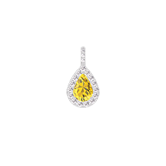 « L'ATELIER » NR. 195386Hanger Witgoud 18 karaat - Gele saffier Peer 0.3 Karaat - Halo Diamant - Setting Diamant - Geen ketting
