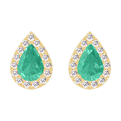 « L'ATELIER » NR. 201413Oorbellen Geelgoud 18 karaat - Smaragd Peer 0.3 Karaat (2 X) - Halo Diamant