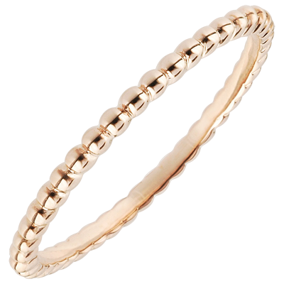 Een veelheid aan roségouden parels opeenvolgend om een ring te vormen. Perfect voor een originele en verfijnde trouwring, met meerdere kleuren of gecombineerd met andere ringen.