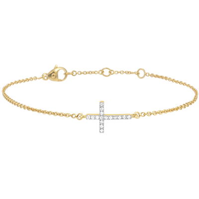 Een kruis armband in geelgoud, met fijne en delicate verhoudingen, wordt versterkt door een nauwgezette diamanten pavézetting gezet op een ketting. Lengte: 11.5mm, Hoogte: 8mm. Verstelbare lengte: 18cm, 17cm, 16cm. Motief 11mm lang en 6mm in de hoogte.