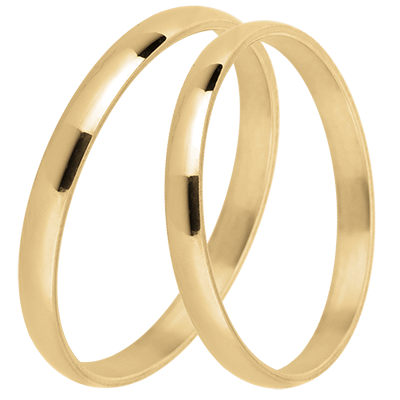 Een elegant paar klassieke trouwringen van geelgoud, 2 mm breed en gepolijst. Tijdloze klasse voor een bijzonder moment.