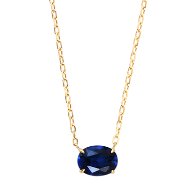 Een ovale synthetische saffier van 1,5 karaat vangt het licht in een pure, opvallende azuurblauwe schittering.Een stralend en verfijnd sieraad, ontworpen om de halslijn met intensiteit te laten schitteren.