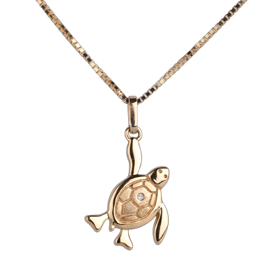 Een babyschildpad in actie overgelaten aan de zee. Zijn schelp is in geborsteld geelgoud en versierd met een diamant. Groot model.