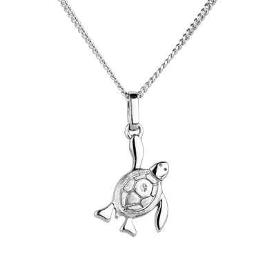 Een babyschildpad in actie overgelaten aan de zee. Zijn schelp is in geborsteld witgoud en versierd met een diamant. Klein model.