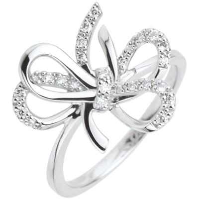 Een grillige knoop aan je vinger in glanzend zilver en diamanten.