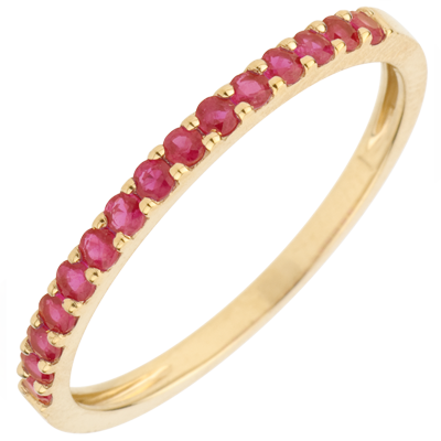 Ring Paradijsvogel - een rij - 9 karaat geelgoud en robijn