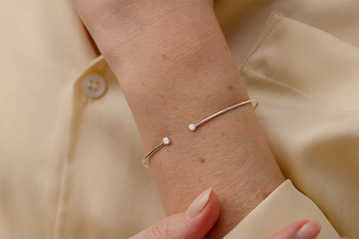 Een fijne en elegante bedelarmband versierd met twee delicate diamanten. Alleen of in combinatie met andere armbanden in geelgouden en roségouden versie.