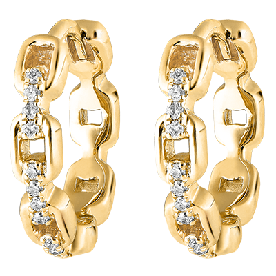 Creoolse oorbellen Oriëntale Uitstraling - Cubaanse Schakel - 18 karaat geelgoud en diamanten