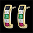 Deze oorbellen zijn gezet met twee smaragden, twee robijnen, twee saffieren en vier diamanten van H-I kwaliteit.