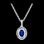 De hanger is bezet met een blauwe saffier van 0,74 karaat en 16 diamanten met een totaalgewicht van 0,16 karaat.