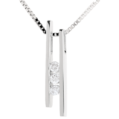 Een halsketting in witgoud met 3 diamanten voor een perfect evenwicht en harmonie.