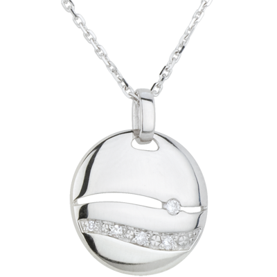 Een ronde ketting en hanger voor een diamanten zonsondergang over de ze.