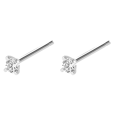 De schittering en frisheid van een paar kleine diamant-fragmenten in witgoud. In combinatie met andere motieven of om zonder mate apart te dragen.