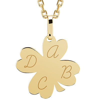 ABC YOURS Nº21Klaver medaillon gegraveerd - Geelgoud 9 karaat ID : 4952
