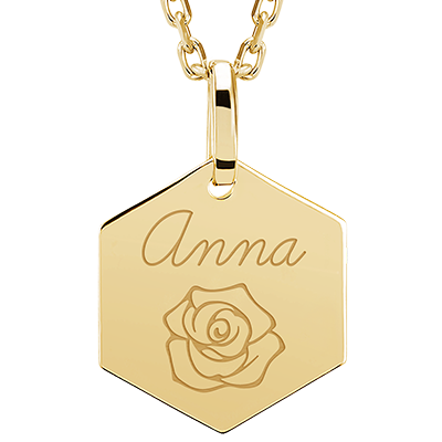 LOVELY YOURS NR. 22Hexagonaal medaillon gegraveerd - Geelgoud 9 karaat ID : 4935