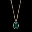 De ketting is bezet met een 2 karaat rechthoekige synthetische smaragd en een synthetische diamant van GSI-kwaliteit, die zorgen voor verfijnde schittering.
