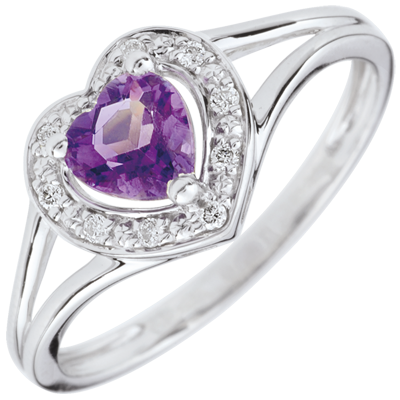 Ring Vrolijk Hart - amethist - 18 karaat witgoud