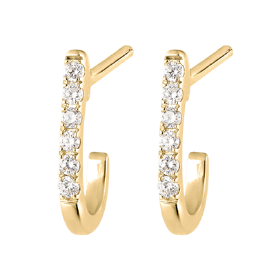 Fijne halve oorbellen van geelgoud waarvan de delicate pavé diamanten de oren laat schitteren.