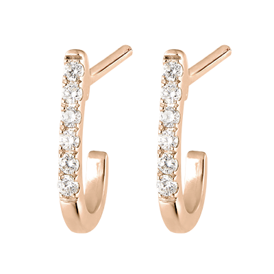 Fijne halve oorbellen van roségoud waarvan de delicate pavé diamanten de oren laat schitteren.