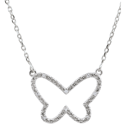 Een gouden en diamanten vlinder aan het einde van een gouden ketting.