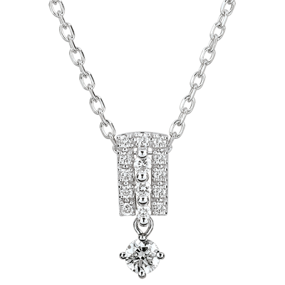 De rijke bezetting van drie rijen diamanten wordt bekroond met een solitaire.