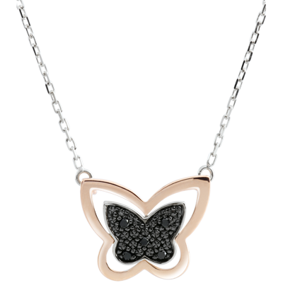 DAGDROMEN NR. 9Halsketting Vlinder - Witgoud en Roségoud 9 karaat - Zwarte diamant ID : 2541 4.8