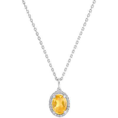 Een cirkel van diamanten beschermt een citrien in het hart.