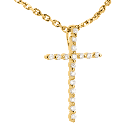 Een fijn en delicaat glanzend kruis voor een discrete en verfijnde hanger.