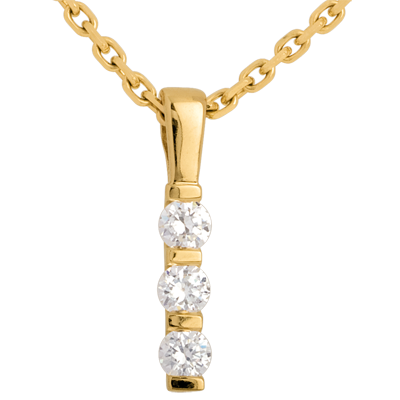 Hoeksteen van een diamanten trilogie met een hanger in geelgoud.