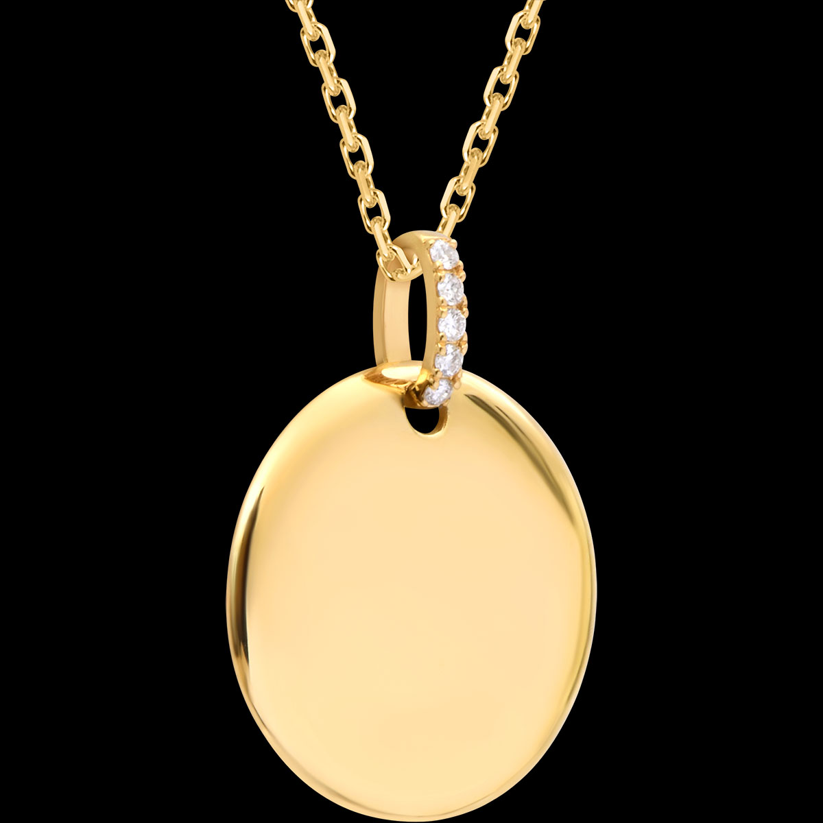 Hélène ronde graveerbare medaille – 18 karaat geelgoud en synthetische diamanten