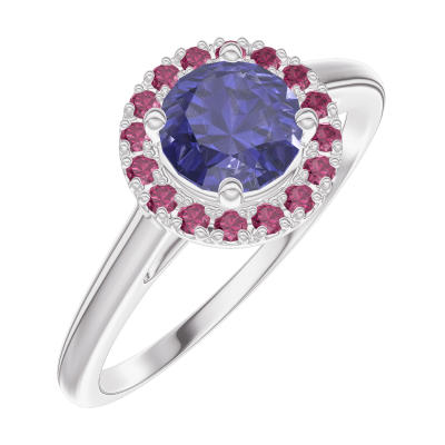 « L'ATELIER » Nº1006659Ring Witgoud 9 karaat - Synthetische saffier rond 0.5 Karaat - Halo Robijn 4.7