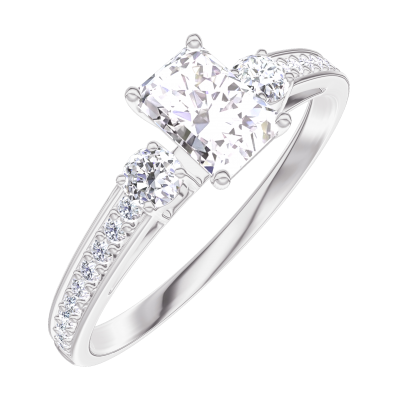 « L'ATELIER » NR. 160228Ring Witgoud 9 karaat - Diamant Rechthoekig 0.3 Karaat - Aanleunende edelstenen Diamant - Setting Diamant