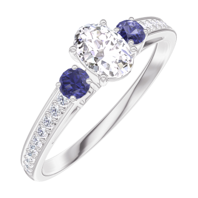 « L'ATELIER » Nº160367Ring Witgoud 18 karaat - Diamant Ovaal 0.3 Karaat - Aanleunende edelstenen Blauwe saffier - Setting Diamant 5