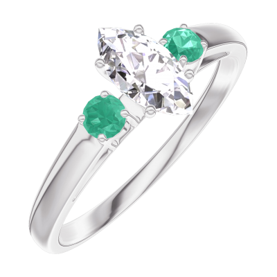 « L'ATELIER » Nº160584Ring Witgoud 9 karaat - Diamant Markies 0.3 Karaat - Aanleunende edelstenen Smaragd