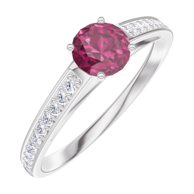 « L'ATELIER » NR. 160608Ring Witgoud 9 karaat - Robijn rond 0.3 Karaat - Setting Diamant 4.5