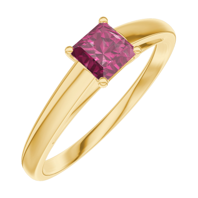 « L'ATELIER » Nº160701Ring Geelgoud 18 karaat - Robijn Prinses 0.3 Karaat