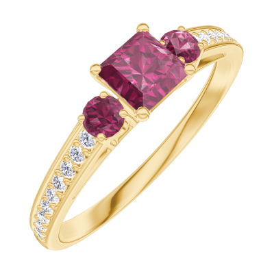 « L'ATELIER » NR. 160745Ring Geelgoud 18 karaat - Robijn Prinses 0.3 Karaat - Aanleunende edelstenen Robijn - Setting Diamant