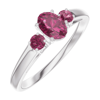 « L'ATELIER » Nº160944Ring Witgoud 9 karaat - Robijn Ovaal 0.3 Karaat - Aanleunende edelstenen Robijn 5
