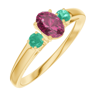 « L'ATELIER » NR. 160982Ring Geelgoud 9 karaat - Robijn Ovaal 0.3 Karaat - Aanleunende edelstenen Smaragd 5