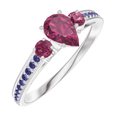 « L'ATELIER » Nº161055Ring Witgoud 18 karaat - Robijn Peer 0.3 Karaat - Aanleunende edelstenen Robijn - Setting Blauwe saffier