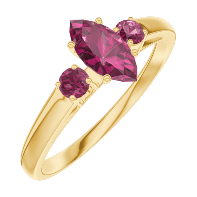 « L'ATELIER » NR. 161141Ring Geelgoud 18 karaat - Robijn Markies 0.3 Karaat - Aanleunende edelstenen Robijn