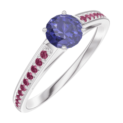 « L'ATELIER » Nº161211Ring Witgoud 18 karaat - Blauwe saffier rond 0.3 Karaat - Setting Robijn 4.5