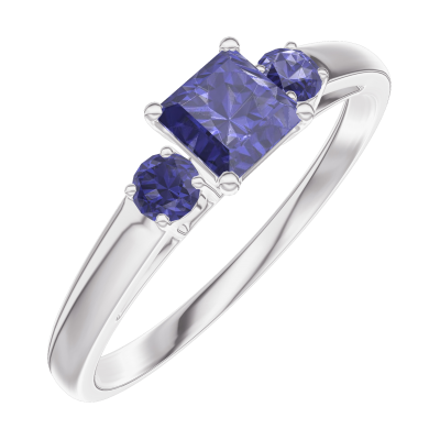 « L'ATELIER » Nº161363Ring Witgoud 18 karaat - Blauwe saffier Prinses 0.3 Karaat - Aanleunende edelstenen Blauwe saffier