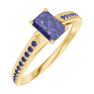 « L'ATELIER » NR. 161414Ring Geelgoud 9 karaat - Blauwe saffier Rechthoekig 0.3 Karaat - Setting Blauwe saffier