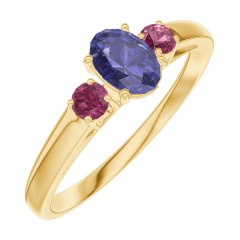 « L'ATELIER » NR. 161542Ring Geelgoud 9 karaat - Blauwe saffier Ovaal 0.3 Karaat - Aanleunende edelstenen Robijn 5