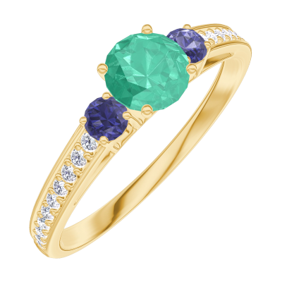 « L'ATELIER » NR. 161866Ring Geelgoud 9 karaat - Smaragd rond 0.3 Karaat - Aanleunende edelstenen Blauwe saffier - Setting Diamant 4.5