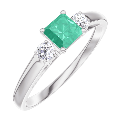 « L'ATELIER » NR. 161923Ring Witgoud 18 karaat - Smaragd Prinses 0.3 Karaat - Aanleunende edelstenen Diamant