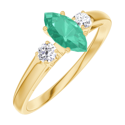 « L'ATELIER » NR. 162321Ring Geelgoud 18 karaat - Smaragd Markies 0.3 Karaat - Aanleunende edelstenen Diamant