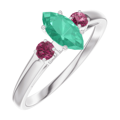 « L'ATELIER » Nº162344Ring Witgoud 9 karaat - Smaragd Markies 0.3 Karaat - Aanleunende edelstenen Robijn